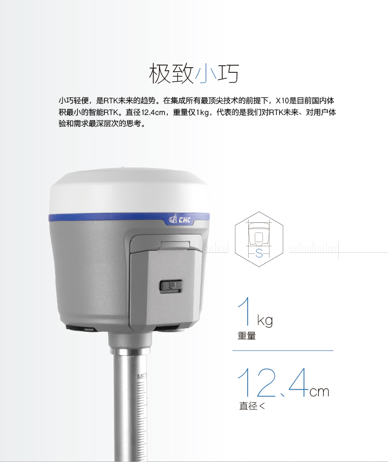 華測(cè)X10 智能RTK,是RTK領(lǐng)域內(nèi)的一次大膽的進(jìn)化。它精致小巧但大有可為,快速精準(zhǔn)的測(cè)量,堅(jiān)固抗摔的材質(zhì),持久耐用的續(xù)航,和智能強(qiáng)悍的配置,為用戶帶來(lái)全新的測(cè)量體驗(yàn)。